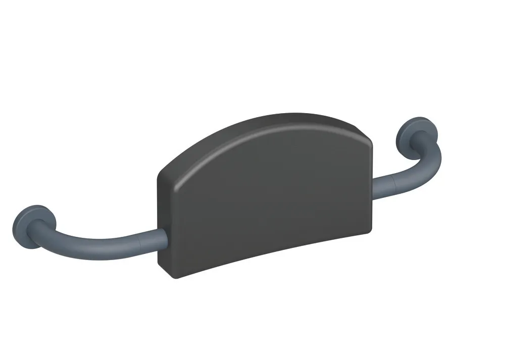 dossier rembourré avec des deux côtés des, barres de fixation coudées en angle droit et rosaces de fixation, répond aux exigences de la norme DIN 18040, avec insert acier inoxydable continu, entraxe de 670 à 730 mm réglable sur site, 220 mm de haut et 150 mm de profondeur, dossier largeur 350 mm, diamètre de barre 33 mm, diamètre de rosace de 70 mm, dossier rembourré pur noir, de haute qualité, polyamide mat dans les couleurs HEWI 99 (blanc pur), 98 (blanc de sécurité), 97 (gris clair), 95 (gris souris) et 92 (gris anthracite), Matériel de fixation BM 211 inclus dans la livraison.