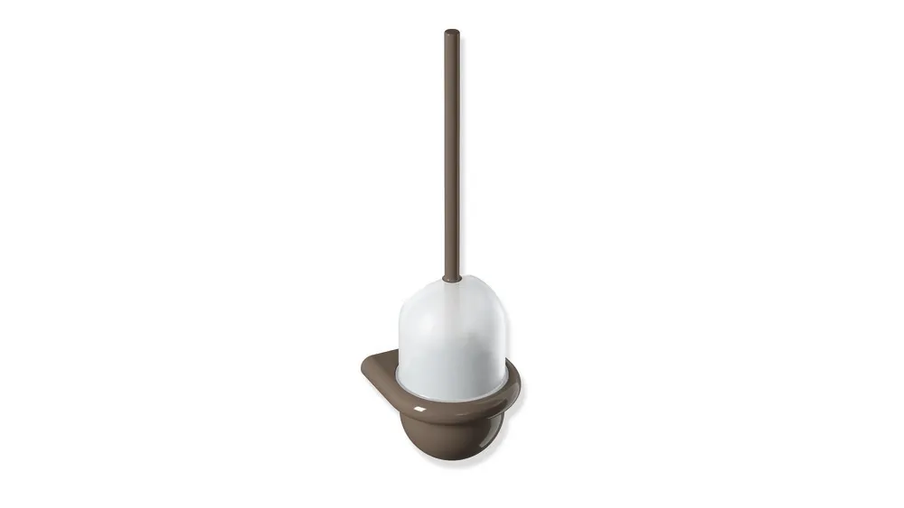 manche de brosse avec tête de brosse noire interchangeable en polyamide, pot à fond bombé et à élément supérieur sphérique, partiellement ouvert, et support en forme d'anneau, le récipient est amovible, mais peut aussi être monté de manière antivol, protection antivol grâce aux vis cachées, largeur 141 mm, 470 mm de haut et 140 mm de profondeur, Supports, pot et manche de brosse en polyamide de haute qualité selon le tableau des couleurs HEWI, élément supérieur en matière synthétique transparent blanc mat, matériel de fixation anti-corrosion HEWI inclus.