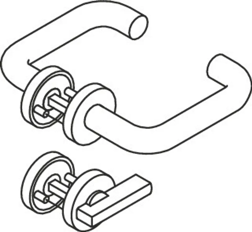 Montage par simple encliquetage des béquilles de porte dans les pièces de support prémontées sur la porte. L'encliquetage peut à nouveau être débloqué à l'aide d'une clé de décondamnation.