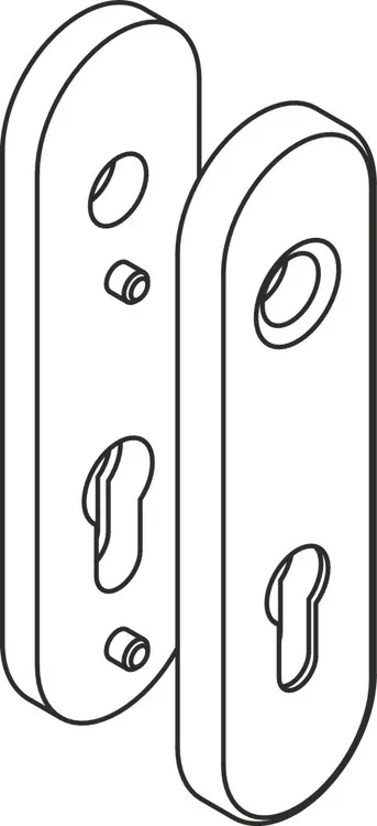 Support de plaque en composite plastique/acier, utilisable à gauche et à droite selon DIN. Raccord à vis caché et protégé contre le desserrage avec combinaison de vis et de vis à douille M4 et tenons de maintien encastrés dans le battant de la porte.