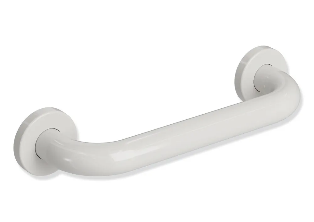 Afficher plus barre coudée à angle droit aux extrémités, avec rosaces de fixation, fixation avec rosaces, largeur 250 mm (entraxe), 85 mm de profondeur et diamètre 28 mm, diamètre de rosace de 60 mm, en polyamide de haute qualité, par selon nuancier HEWI, matériel de fixation anti-corrosion HEWI inclus.