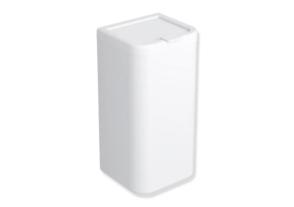 Afficher plus corps et couvercle en polyamide brillant dans la couleur HEWI 98 (blanc de sécurité), élément de cadre en polyamide brillant, contenance env. 6 l, largeur 161 mm, hauteur 310 mm, profondeur 141 mm, montage mural