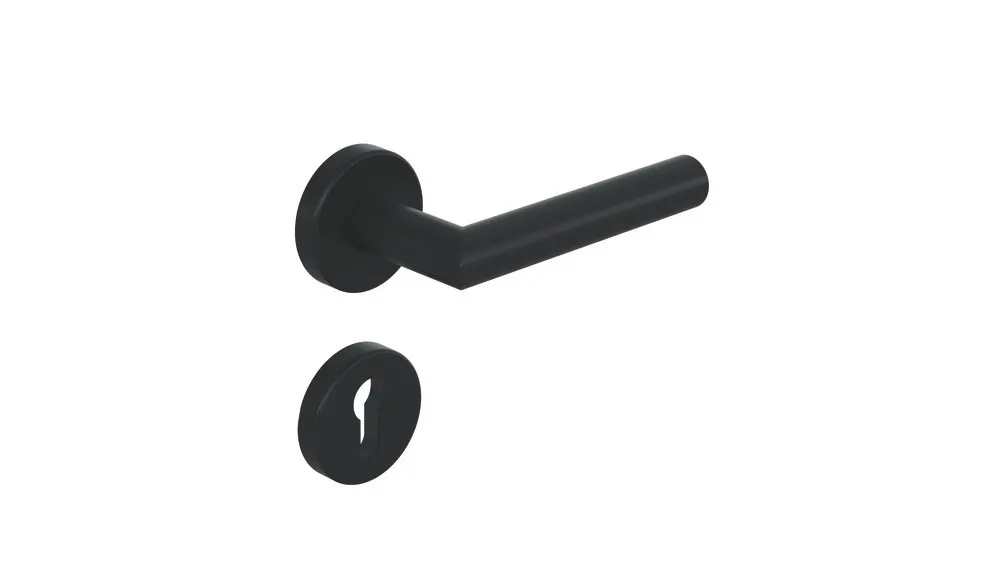 en technique H avec rosaces selon les normes DIN 18255 et EN 1906 en acier inoxydable, thermolaquage en noir mat profond, composée de :