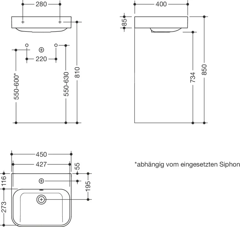 - 450 mm de large et 400 mm de profondeur
