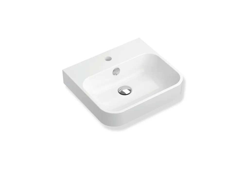 Afficher plus résine minérale, blanc alpin, bassin rectangulaire avec des rayons généreux, largeur 450 mm, profondeur 400 mm, profondeur de la vasque 100 mm, y compris le trop-plein, avec rosace et cache, préparé pour robinetterie à un trou, charge admissible selon EN 14688, Marquage CE et UKCA conformément à la directive sur les produits de construction n° 305/2011.