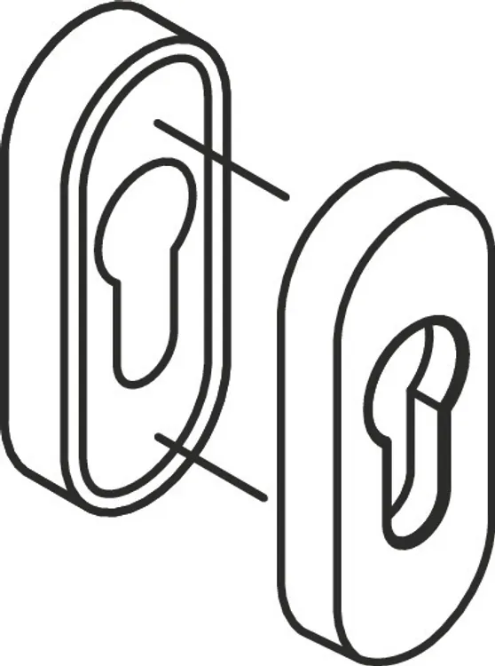 Afficher plus en acier inoxydable surface brossée mate avec cache-cylindre, rosace extérieure, massif, ovale 72 x 30 mm, hauteur 10 mm, rosace intérieure version FS en construction composite polyamide -acier, ovale 72 x 30 mm, hauteur 10,5 mm, entrées de clé pour cylindre profilé (PZ), pour les dépassements de cylindre : 10,5 - 15 mm, la rosace antivol HEWI est conforme aux prescriptions de la norme DIN 18273
