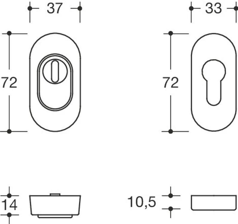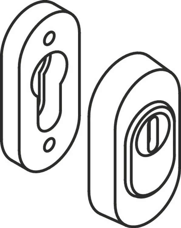 Afficher plus en acier inoxydable surface brossée mate avec cache-cylindre, rosace extérieure, massif, ovale 72 x 37 mm, hauteur 14 mm, rosace intérieure version FS en construction composite polyamide -acier, ovale 72 x 30 mm, hauteur 10,5 mm, entrées de clé pour cylindre profilé (PZ), pour les dépassements de cylindre : 10,5 - 15 mm, la rosace antivol HEWI est conforme aux prescriptions de la norme DIN 18273