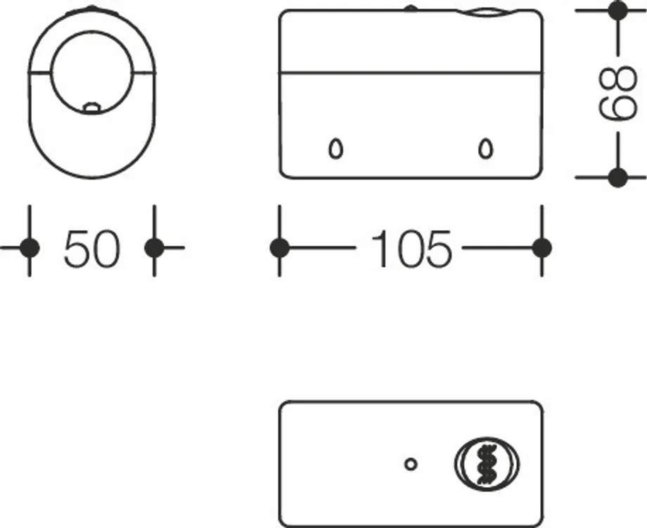- largeur 50 mm, hauteur 68 mm, 105 mm de largeur