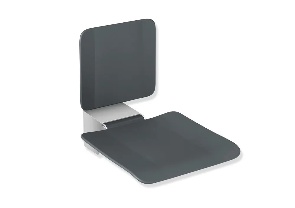 - Siège rabattable avec revêtement antidérapant, assise structurée antidérapante en matière synthétique dans les couleurs HEWI 98 (blanc de sécurité) et 92 (gris anthracite)