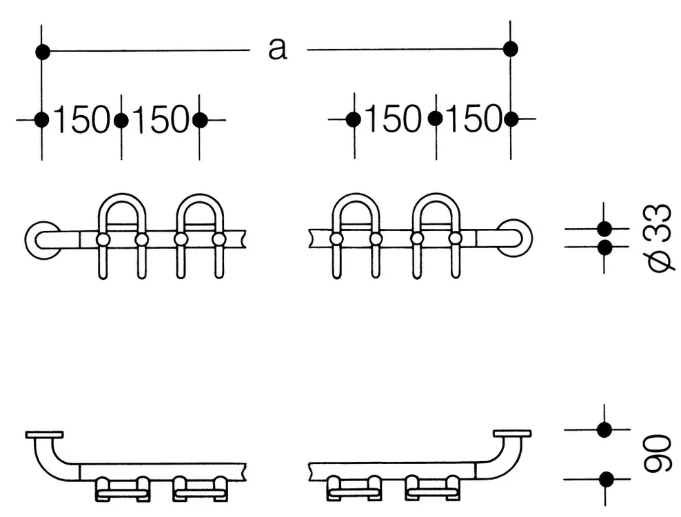 - avec crochets doubles fixes, modèle 6HP, espacement de 150 mm