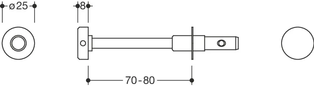 pour poignées de 25 mm de diamètre en acier inoxydable pour le montage de la poignée à l'arrière avec rosace de clipsage sur du bois massif, des profils en PVC et des profils en aluminium à 2 - 3 chambres.