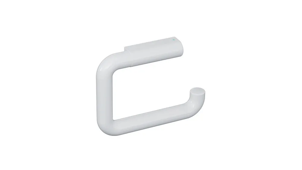Meer tonen rechthoekige, gebogen, U-vormige houder, diefstalveilig door verborgen schroefbevestiging, 160 mm breed en 120 mm hoog, stang 21 mm in diameter, inclusief corrosievrij HEWI bevestigingsmateriaal, van hoogwaardige polyamide in de HEWI kleur 98 (signaalwit), met anti-microbieel werkzaam microzilver