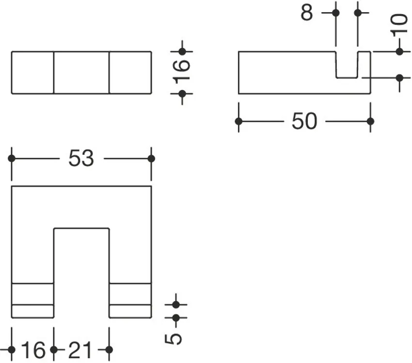 Vierkant design lichaam, 50 mm diep, 53 mm breed, van metaal, hoogwaardig verchroomd, inclusief corrosievrij HEWI bevestigingsmateriaal.