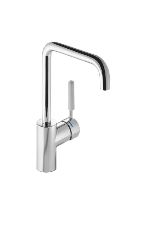 Meer tonen hoogwaardig verchroomd, ronde buis, met gekleurd greepelement van polyamide in selecte HEWI kleuren, doorstroming 5 l/min, Keramisch patroon Kerox K-35B, drukbestendig tot 35 bar, bedieningshendel met warm-koud-markering, 270 mm hoog, stangen 187 mm lang, draaibare uitloop, optioneel vast te zetten, zonder afvoergarnituur