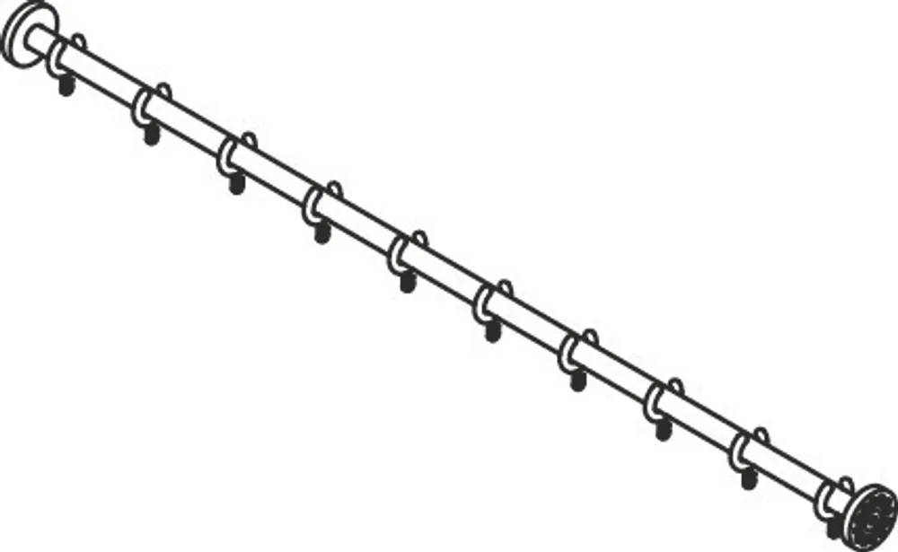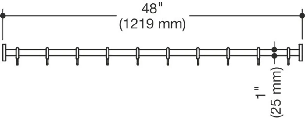 roestvrij staal, mat geborsteld, lengte 48 inch (1219 mm), kan worden ingekort, stangen diameter 1 inch (25 mm), met 10 gordijnringen van witte POM
