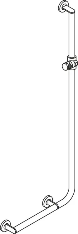 Meer tonen Roestvrij staal, gepoedercoat, horizontale lengtes 450 mm, verticale lengte 1250 mm, Diameter 32 mm, Linker versie, met traploos verstelbare douchekophouder van hoogwaardig mat polyamide, getest tot 200 kg bij gebruik met HEWI-bevestigingsmateriaal, Aanbevolen maximaal gewicht van de gebruiker: 150 kg.