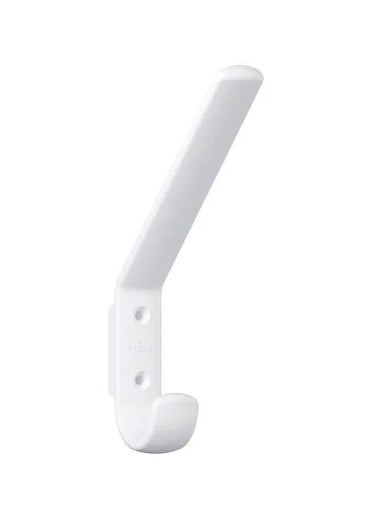 Meer tonen haken met schuine hoed haken en afstandblokje, voor het ophangen van kledingstukken en hoofddeksels, 163 mm hoog, 22 mm breed en 123 mm diep, van hoogwaardig, mat polyamide volgens HEWI kleurenkaart, levering zonder schroeven en pluggen.