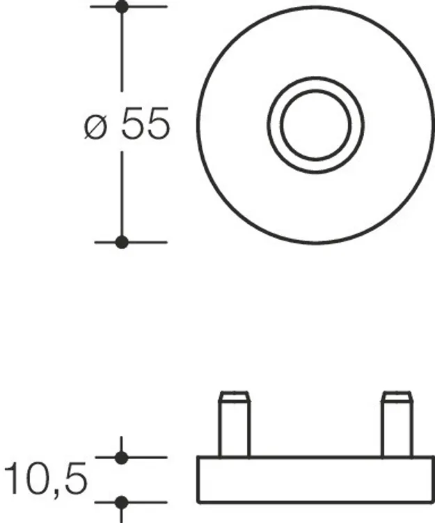 Afdekkap voor rozetten, rond, van roestvrij staal (1.4301), diameter 55 mm, 10,5 mm hoog, 1,5 mm wanddikte.