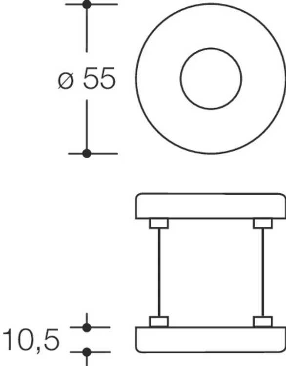 Afdekkap voor rozetten, rond, diameter 55 mm, 10,5 mm hoog, vlak, 1,5 mm wanddikte.