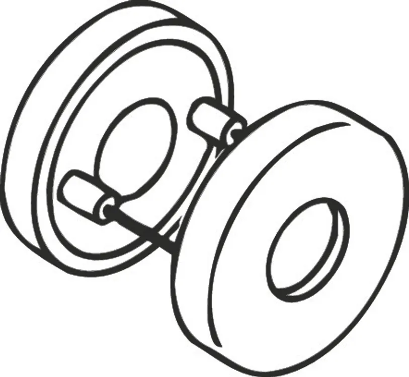 Onderconstructie voor rozetten in kunststof-roestvrij staal verbindingsconstructie, DIN links en DIN rechts toepasbaar. Verborgen, betrouwbare schroefverbinding met combinatie van M4 schroeven en hulsschroeven en steunpen binnenin het deurblad.