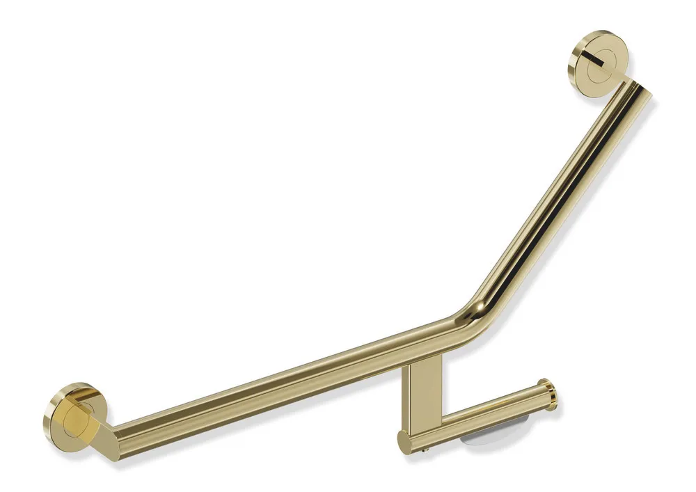 Meer tonen roestvrij staal, PVD-coating, asafmetingen 620 mm en 283 mm, hoek 135°, Diameter 32 mm, uitvoering links.