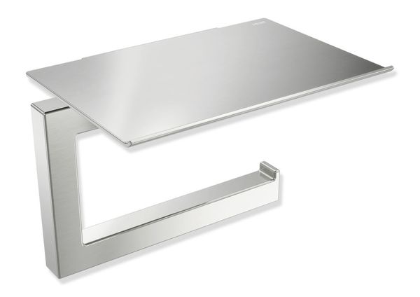 - U-vormige wc-rolhouder in geometrisch, vierkant design met planchet, naar rechts geopend