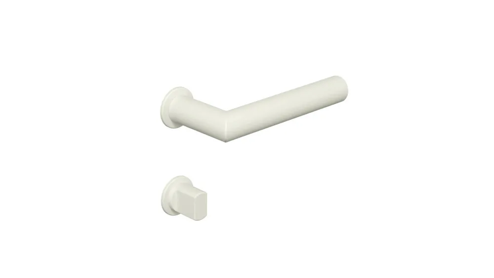 met vlakke deurkrukrozet, afdekkap van mat polyamide, deurkruk model 162.21PBM. in versteksnede van mat polyamide met doorlopende stalen kern, vierkantstift 8 mm, voor Oostenrijk 8,5 mm, met trapeziumschroefdraad Bevestiging van de drukker in een druklager en een polyamide glijlagerbus. met WC-rozet 306PBMNR, diameter 32 mm, uitvoering met noodopening munt, naar keuze kijkschijf (weergave rood/groen) aan de buitenkant. Montage van de inpersbussen door middel van montagemoeren met trapeziumschroefdraad., SW 19, met een ringsleutel SW 19. De montage wordt aanbevolen op zowel stompe als ingefreesde woon- en binnendeuren met HDF-bovenpaneel en tussenlagen van buisvormige spaanplaat of massieve spaanplaat inleg of van hogere kwaliteit.