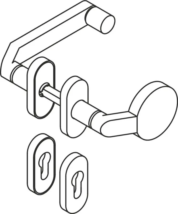 Montage door eenvoudig vergrendelen van de deurkrukken in de reeds op de deur voorgemonteerde onderdelen. De klikstand kan weer los worden gemaakt met een demontagesleutel.