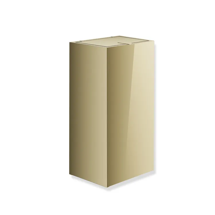 Vis mer Rustfritt stål, PVD-belagt, Kapasitet ca. 25 liter, Bredde 260 mm, Høyde 501 mm, Dybde 203 mm, for veggmontering og kan også brukes frittstående.