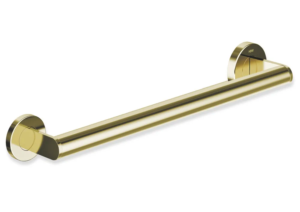 Rustfritt stål, PVD-belagt, Akselmål 400 mm, Diameter 32 mm, Testet opp til 200 kg ved bruk med HEWI festemateriale, Anbefalt maksimal vekt for brukeren: 150 kg.
