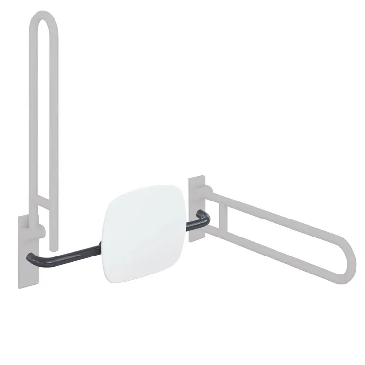 Vis mer Polyamid, høyglans, Ryggstøtte i plast i HEWI-farge 98 (signalhvit), Bredde 650 til 750 mm, Dybde 150 mm, Ryggstøtte 334 mm høy og 370 mm bred, Stangdiameter 33 mm, Montering på hengslede støtteskinner eller veggskinner med veggplate, Justerbar på stedet, oppfyller kravene i DIN 18040 og ÖNORM B1600/1601.