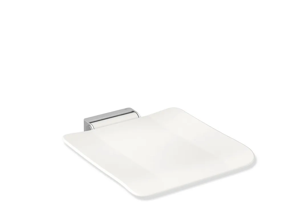 Pokaż więcej Uchwyt ścienny ze stali nierdzewnej, matowy polerowany, Siedzisko wykonane z teksturowanego tworzywa sztucznego, Szerokość siedziska 450 mm, 450 mm głębokości, Przetestowano do 200 kg w przypadku użycia z materiałem mocującym HEWI, Zalecana maksymalna waga użytkownika: 150 kg, spełnia wymagania normy DIN 18040, ÖNORM B1600/1601 i SIA 500.