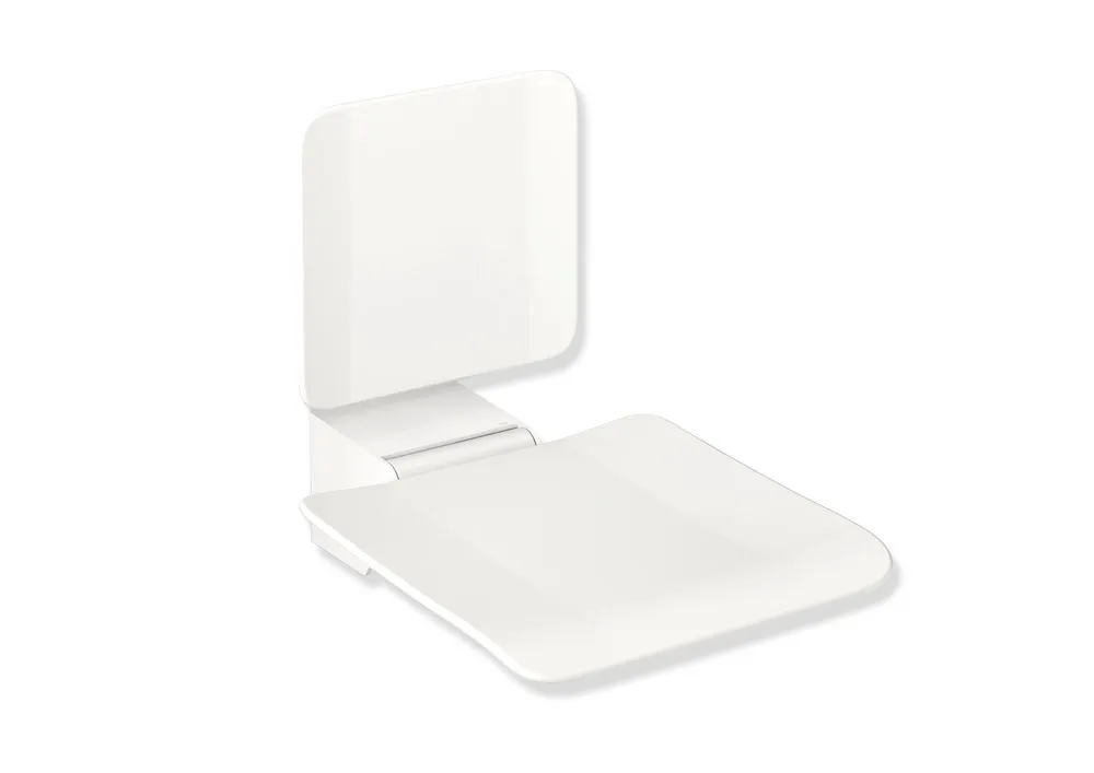 Pokaż więcej Uchwyt ścienny ze stali nierdzewnej, Malowany proszkowo, Siedzisko i oparcie wykonane z teksturowanego tworzywa sztucznego, Szerokość siedziska 450 mm, 450 mm głębokości, Przetestowano do 200 kg w przypadku użycia z materiałem mocującym HEWI, Zalecana maksymalna waga użytkownika: 150 kg, spełnia wymagania normy BS 8300:2009 (+A1:2010)/Doc M.