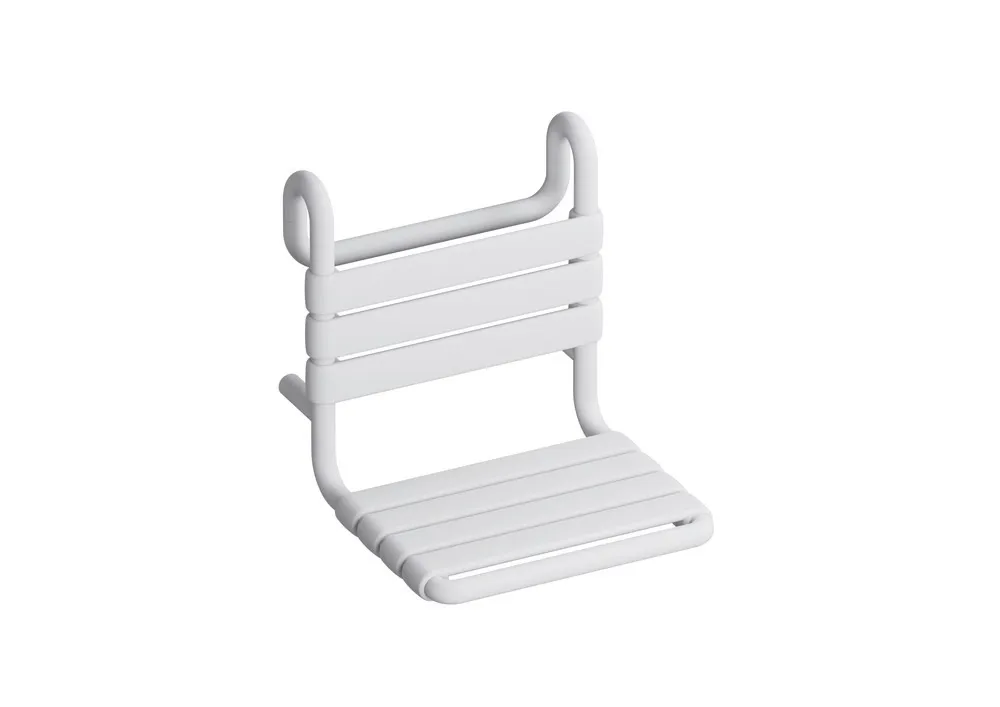 Polyamide, matt, Seat 450 mm wide, 354 mm deep, for hanging in shower grab rails and support rails, Rod diameter 30, 32 and 33 mm, tested up to 200 kg, Recommended maximum weight of the user: 150 kg.
