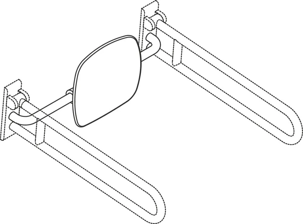 Poliamid, wysoki połysk, Plastikowe oparcie w kolorze HEWI 92 (szary antracyt), Szerokość 650 do 750 mm, głębokość 150 mm, Oparcie o wysokości 334 mm i szerokości 370 mm, Średnica pręta 33 mm, Montaż na składanych uchwytach lub uchwytach ściennych z płytą ścienną, możliwość regulacji podczas montażu, spełnia wymogi norm DIN 18040 i ÖNORM B1600/1601
