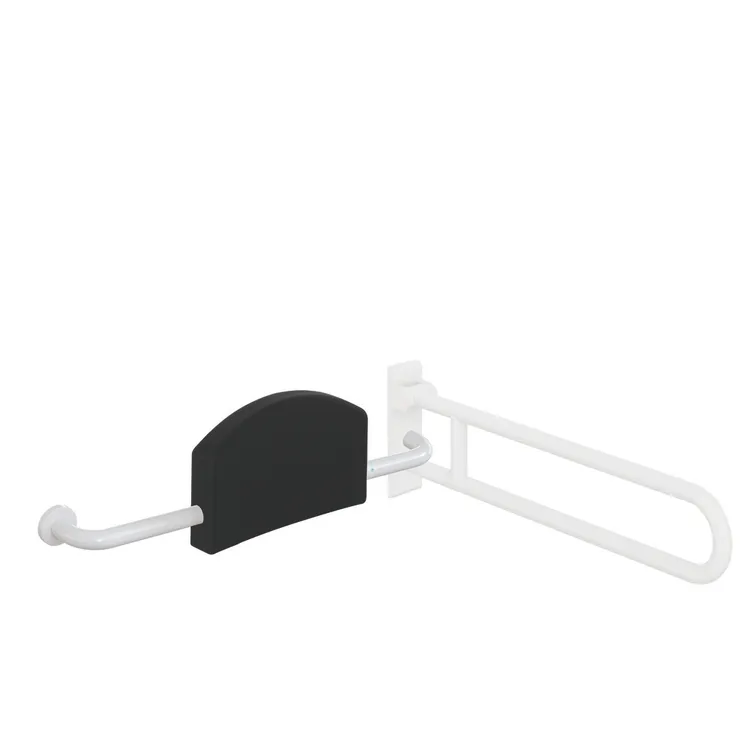 Pokaż więcej z ciągłym, rdzeniem stalowym zabezpieczonym przed korozją, Wersja lewa, 670 do 730 mm szerokości, 220 mm wysokości i 150 mm głębokości, Podparcie pleców o szerokości 350 mm, Średnica pręta 33 mm, Średnica rozety 70 mm, oparcie z czarnej pianki poliuretanowej, Kije wykonane z wysokiej jakości poliamidu w kolorze HEWI 98 (biały sygnałowy), z mikrosrebrem przeciwdrobnoustrojowym, spełnia wymogi norm DIN 18040 i ÖNORM B1600/1601