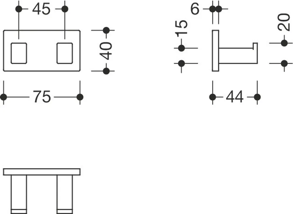 stal nierdzewna, wysokiej jakości chromowanie, szerokość 75 mm, głębokość 44 mm.