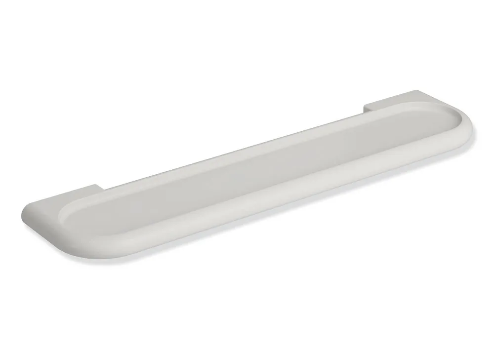 shelf with all-round edge, a push-button facilitated release, anti-theft locking system, 600 mm wide, 26 mm high and 140 mm deep, made of high-quality matt polyamide in HEWI colours 99 (pure white), 98 (signal white), 97 (light grey) and 95 (stone grey), including non-corrosive HEWI fixing material.
