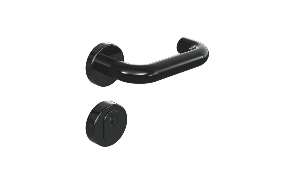 Pokaż więcej w technologii R z rozetami zgodnymi z normami DIN 18255 i DIN EN 1906 wykonanymi z poliamidu, wysoki połysk, Klasa ochrony ES 1 zgodnie z normą DIN 18257, Dźwignia 111R z poliamidu z ciągłym rdzeniem stalowym, Średnica 20 mm. Rozeta 305.20R., około, wykonany z poliamidu. Średnica 55 mm, Wysokość 10,5 mm. Róża ochronna 306.23ESZRC z kompozytu poliamidowo-stalowego z osłoną cylindra, Średnica zewnętrzna rozety 58 mm, 16 mm wysokości, hartowana dolna część, Wewnętrzna średnica rozety 55 mm, Wysokość 10,5 mm, Rozeta ochronna jest zgodna ze specyfikacją DIN 18273.