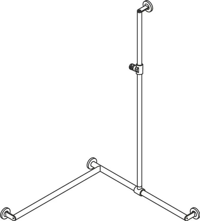 - drążki umieszczone pionowo i poziomo, połączone pod kątem prostym, z rozetami mocującymi i uchwytem na słuchawkę prysznicową
