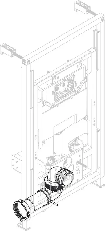 Pokaż więcej Prewall element for electrically height-adjustable toilet for add-on modules with manual flushing plate, side outlet on the left, dimensions: 726 mm wide, H 1355 - 1505 mm, D 210-240 mm, floor support vertically adjustable by 200 mm, made of steel, powder coated, weight capacity up to 250 kg, can be retrofitted with hinged support rails, incl. floor and wall-fixing material for concrete and solid calcium silicate (lime-sand) masonry units, authorization acc. to DIN 4109, ÖNorm B 8115 and SIA 181 in preparation, CE and UKCA marking according to EMC 2014/30/EU.