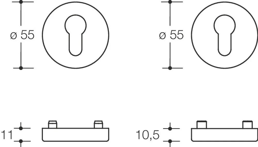 holes for profiled cylinder (Euro cylinder and KABA), for cylinder projections: 7 - 12 mm.