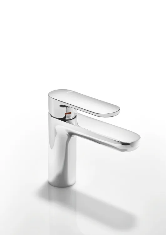 Pokaż więcej high-quality chrome-plated, round, flow rate 5 l/min, ceramic cartridge Kerox K-35OP, pressure-resistant up to 35 bar, brass body, operating lever with hot/cold marking, 140 mm high, projection: 160 mm, rigid spout, without drain set, noise class 1.