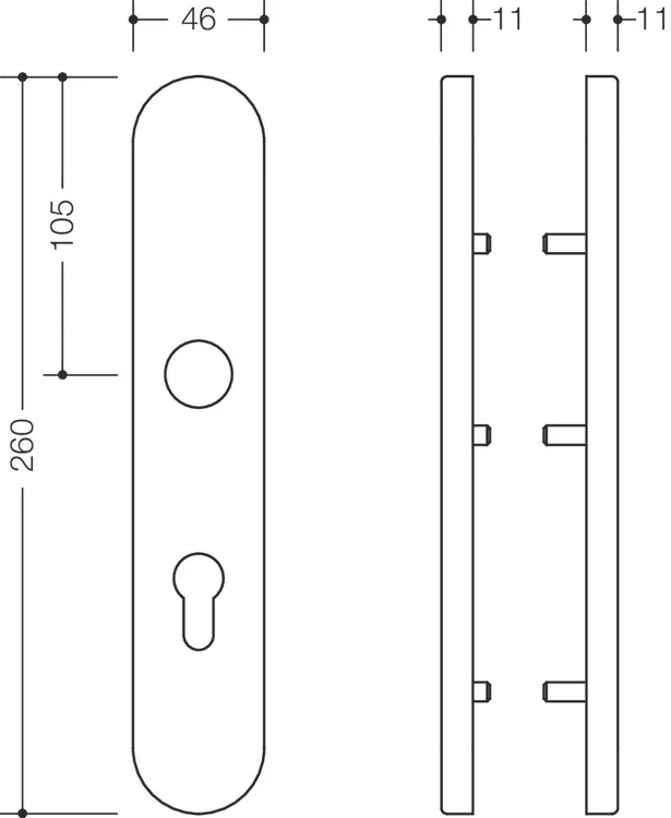 Pokaż więcej in R-technology made of polyamide, high-gloss surface, for lever handle diameter 23 mm, backplate base made of polyamide-stainless steel composite, backplate cover cap, 46 x 260 mm, 11 mm high, flat, 1.5 mm wall thickness, Supplied with screws.