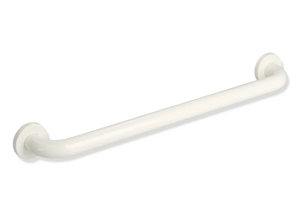 Pokaż więcej uchwyt z rozetkami do mocowania, zagięty na obu końcach pod kątem prostym, Wymiar osi 600 mm, Średnica pręta 33 mm, Średnica rozety 70 mm, z metalowym rdzeniem i zakończeniami łuków wzmocnionymi stalą, z wysokiej jakości polamidu, zgodnie z tabelą kolorów HEWI, w komplecie odporny na korozję materiał montażowy HEWI