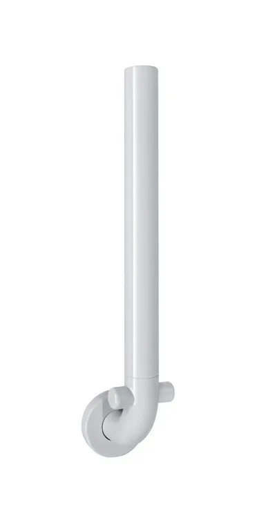 Pokaż więcej zagięty do góry pod kątem prostym uchwyt z rozetką do mocowania, na 3 rolki papieru toaletowego, Zabezpieczenie przed kradzieżą dzięki ukrytemu połączeniu śrubowemu, 361 mm wysokości i 91 mm głębokości, Średnica rozety 70 mm, wykonane z wysokiej jakości poliamidu zgodnie z tabelą kolorów HEWI, w tym odporny na korozję materiał mocujący HEWI.