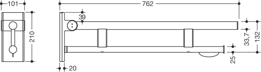 Składany uchwyt pomocniczy HEWI Duo, Projekt A