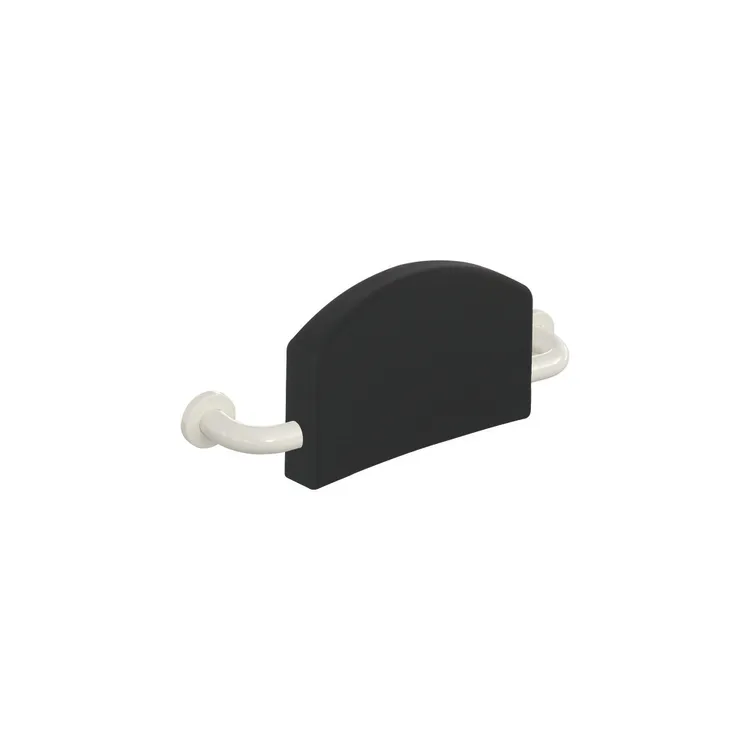 Stoppat ryggstöd med fästen på båda sidor, Rätvinkliga böjda stavar och fixeringsrosetter, med kontinuerlig, Korrosionsskyddad stålkärna, Montering på väggen med rosetter, 430 bred, 220 mm hög och 150 mm djup, Ryggstöd 350 mm brett, Stångdiameter 33 mm, Rosettens diameter 70 mm, Ryggklädsel av svart PUR, Tillverkad av högkvalitativ polyamid enligt HEWI:s färgskala., uppfyller kraven i BS standard BS 8300:2009 (+A1:2010)/Doc M.