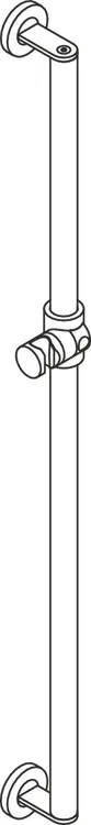 - Vertikal stång med stöd, fästrosetter och duschhållare utformad för att vara riktad mot väggen.