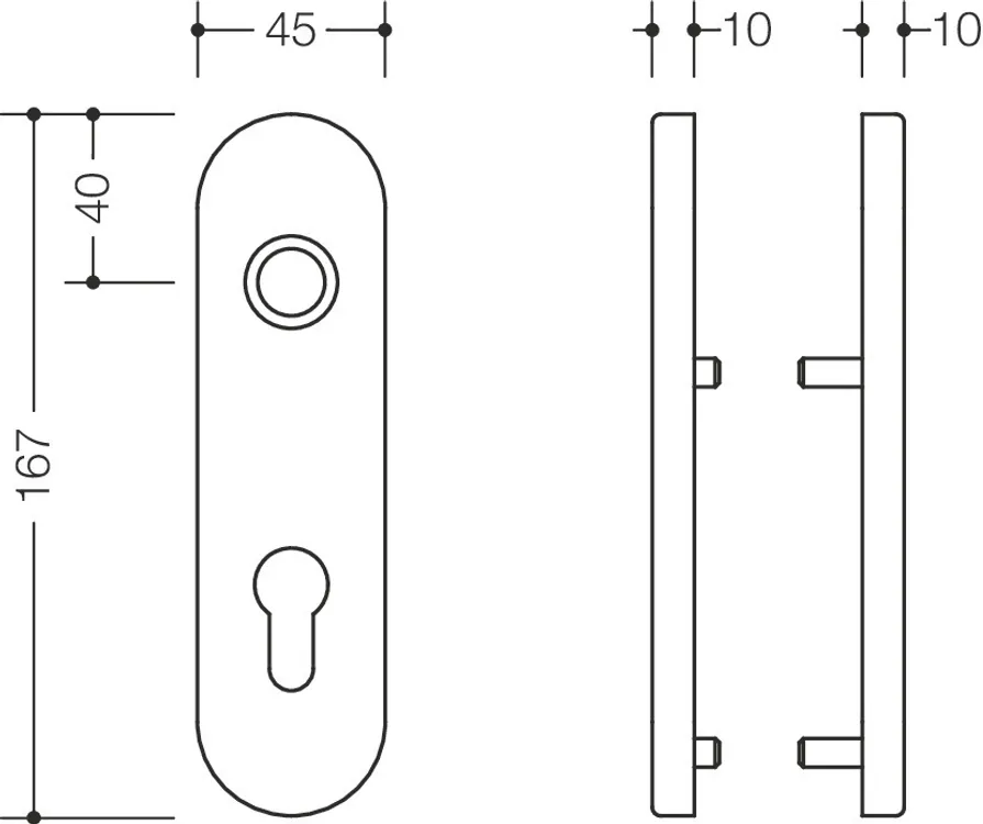 i H-teknik, Rostfritt stål, Matt markyta, för spakhandtag med halsdiameter 21,3 mm, Skyltunderbyggnad i kompositkonstruktion av plast och stål, Integrerad hållmodul med fjäderstöd, Skyddande lock, runda, 45 x 167 mm, 10 mm hög, 1,5 mm väggtjocklek, Leverans inklusive skruvar.